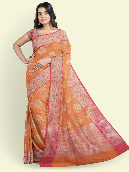 Faishana Presents Handwoven Orange Cotton Blend Floral Boota With Pink Blouse Faishana PresentsSaree