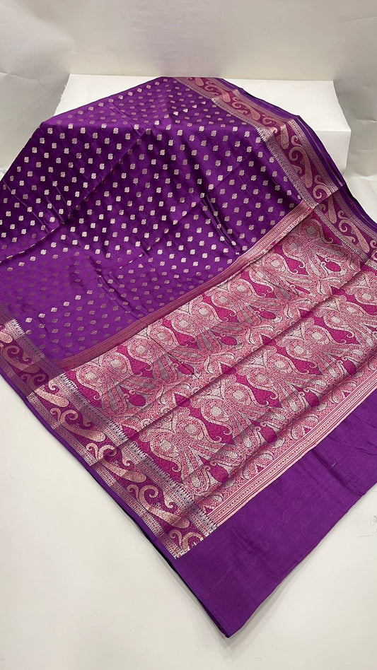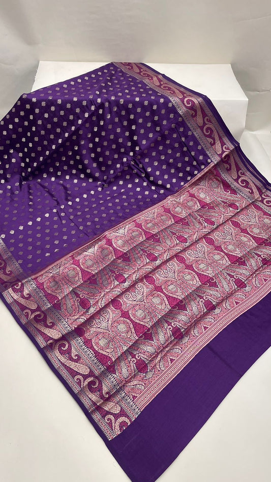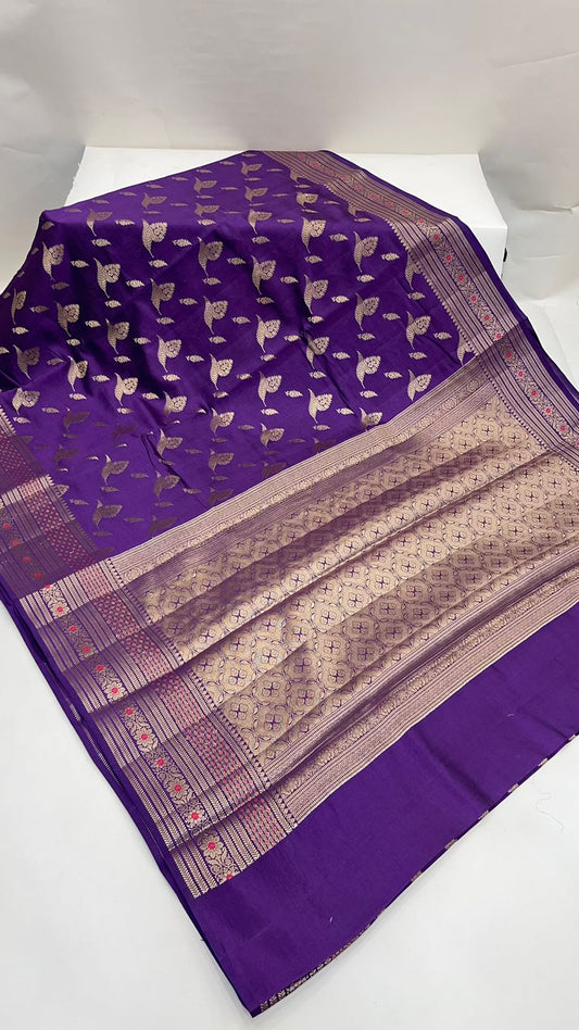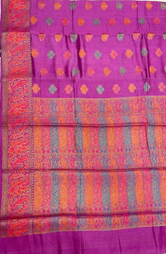 Faishana Pure Handloom Purple Chiniya Silk Floral Minakari Zari Booti with Paisley Mina Zari Border and Rangkaat Paisley Pallu with Purple Blouse