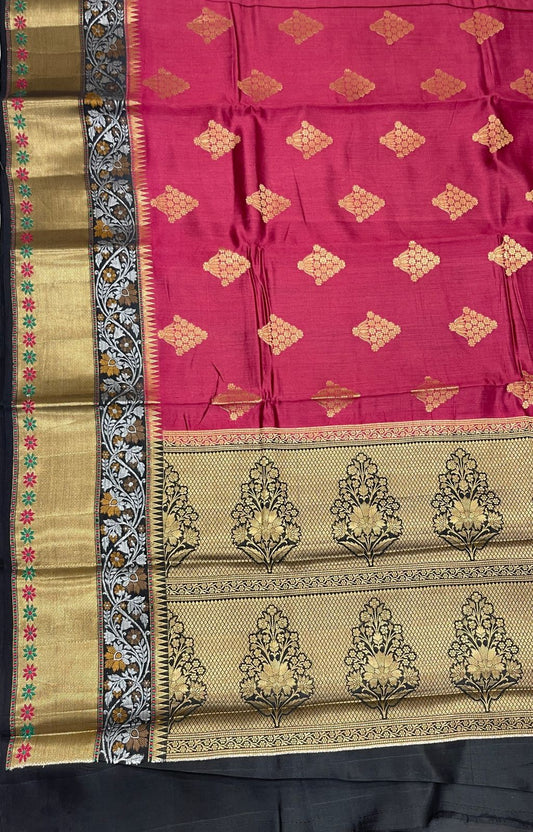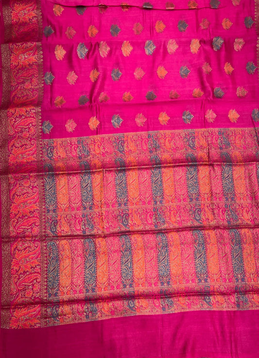 Faishana Pure Handloom Magenta Chiniya Silk Floral Minakari Zari Booti with Paisley Mina Zari Border and Rangkaat Paisley Pallu with Magenta Blouse