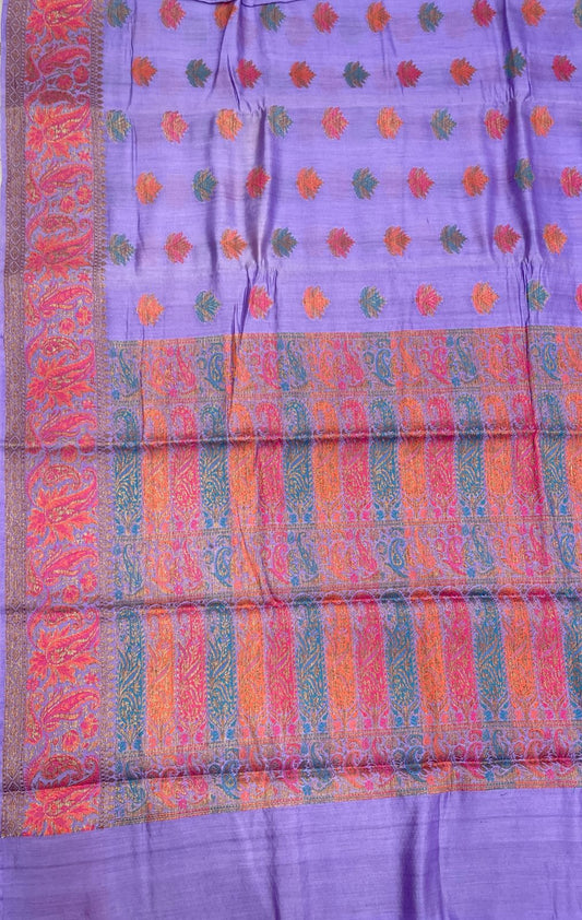 Faishana Pure Handloom Light Purple Chiniya Silk Floral Minakari Zari Booti with Paisley Mina Zari Border and Rangkaat Paisley Pallu with Light Purple Blouse