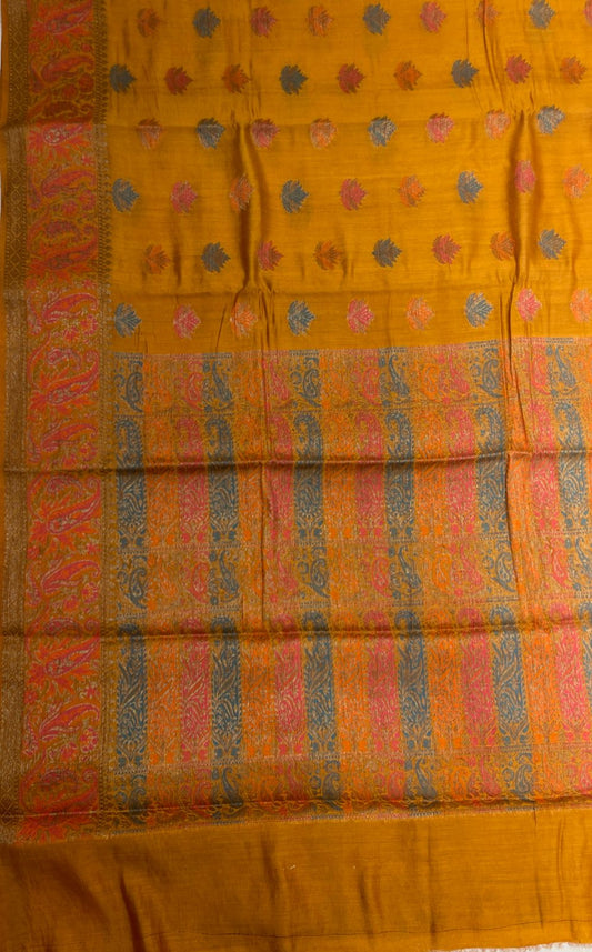 Faishana Pure Handloom Gold Chiniya Silk Floral Minakari Zari Booti with Paisley Mina Zari Border and Rangkaat Paisley Pallu with Gold Blouse