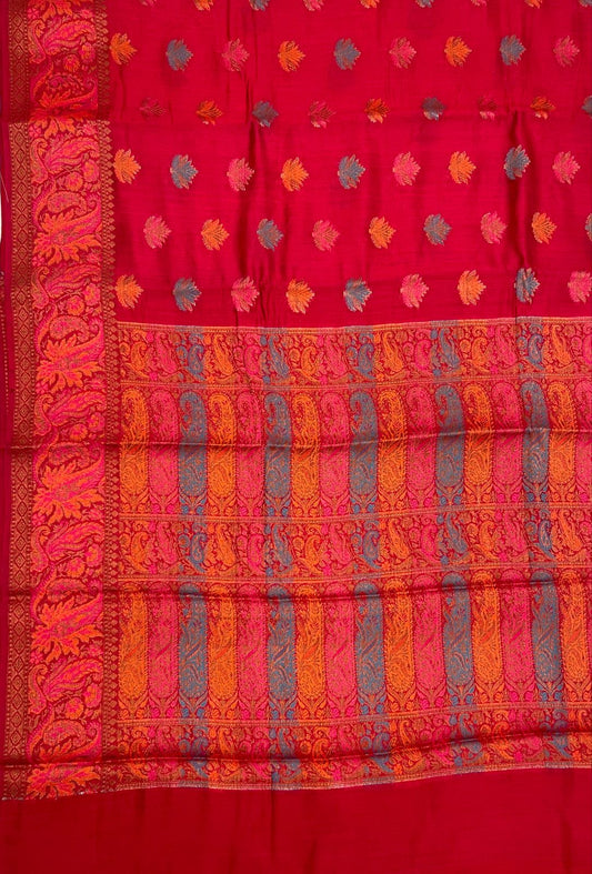 Faishana Pure Handloom Red Chiniya Silk Floral Minakari Zari Booti with Paisley Mina Zari Border and Rangkaat Paisley Pallu with Red Blouse