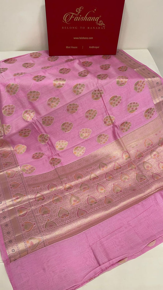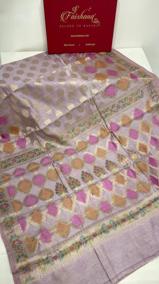Faishana Pure Handloom Light Purple Chiniya Silk Floral Minakari Zari Booti with Paisley Mina Zari Border and Rangkaat Paisley Pallu with Light Purple Blouse