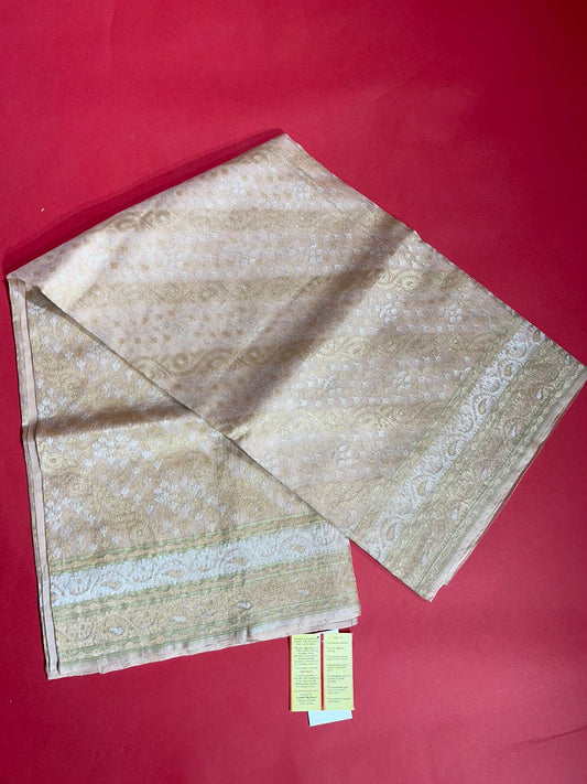 Faishana Pure Silk Handloom Kora Organza Real Zari Kadhwa Aada Booti with Beige Kadhwa Blouse Banarasi Saree