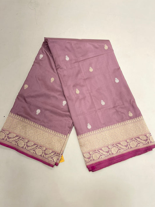 Faishana Pure Silk Handloom Mauve Katan Silk Kadhwa Sona Rupa Floral Zari Booti with Kadhwa Gold Floral Zari Anchal and Golden Stripe Mauve Blouse