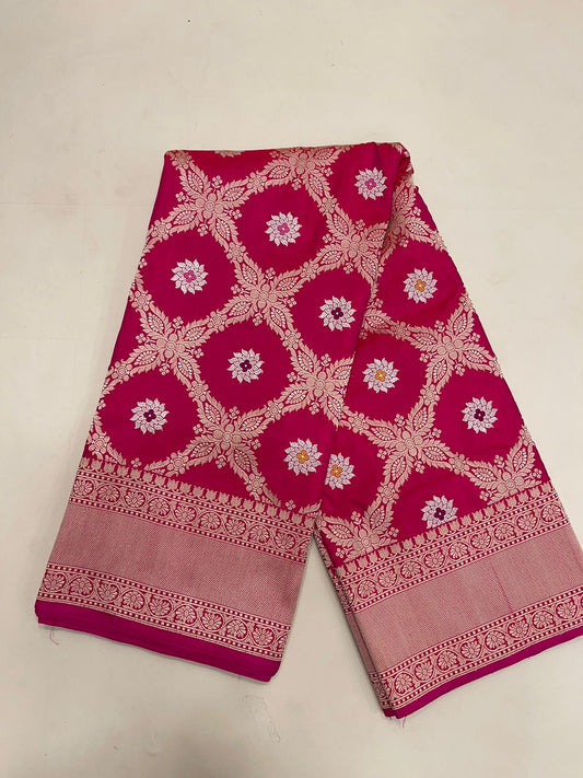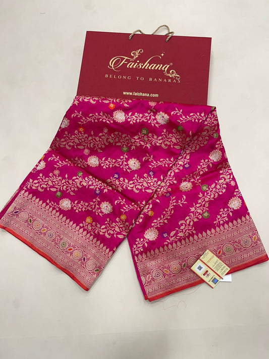 Faishana Pure Silk Handloom Katan Silk Pink Aada Kadhwa Meenakari Jangla Kadhwa Border with Pink Blouse