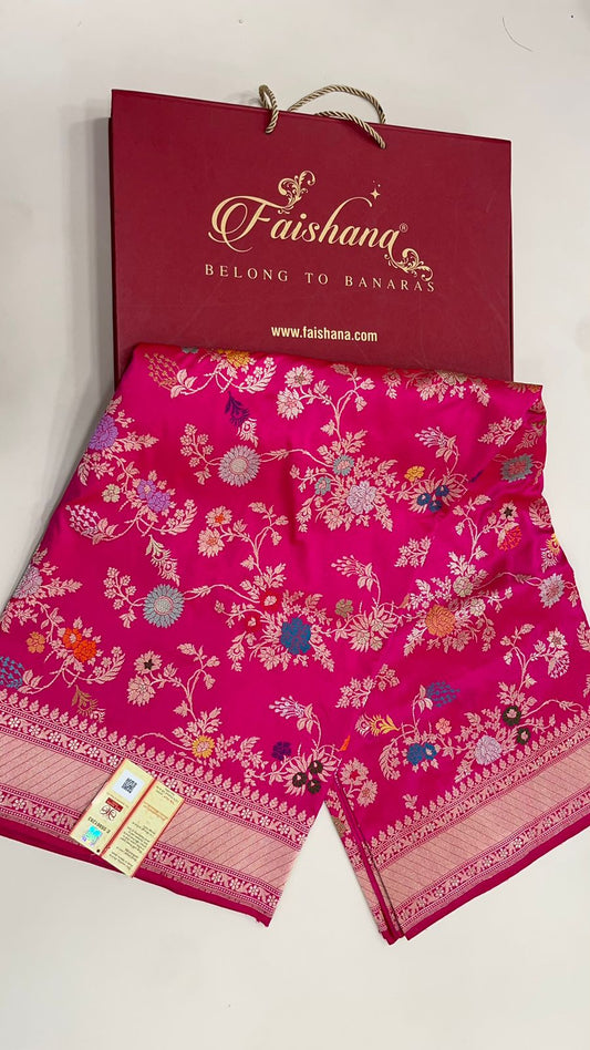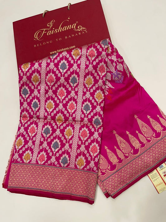 A pure Katan silk saree is a beautiful and elegant piece of clothing that is highly valued in traditional Indian fashion. Katan silk, often referred to simply as Katan, is a silk fabric known for its durability, softness, and sheen. It's typically handwoven and is used to create luxurious sarees that are popular for weddings and other significant events. The term "Katan" refers to a technique of weaving where the threads are twisted together to create a fabric with a rich texture and sheen. Pure Katan silk sarees often feature intricate designs, including elaborate patterns and motifs, and they are renowned for their drape and comfort. These sarees are cherished for their craftsmanship and are often adorned with traditional designs and patterns, making them a timeless choice for special occasions. If you're looking to purchase a pure Katan silk saree, make sure to check for authenticity and quality by examining the weave, feel, and overall craftsmanship. Faishana is a notable brand associated with the manufacture of luxurious pure Katan silk sarees in Varanasi, a city renowned for its rich tradition in silk weaving. Varanasi, often called the silk-weaving capital of India, is famous for its intricate and high-quality silk sarees, including those made from pure Katan silk.