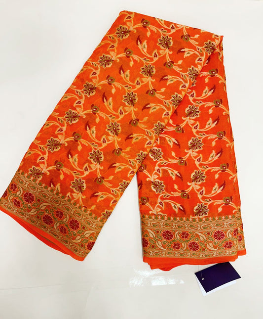 Faishana Pure Handloom Orange Chiffon Resham Zari Tilfi Mina Jaal with Minakari Paisley Zari Anchal and Minakari Border with Orange Blouse