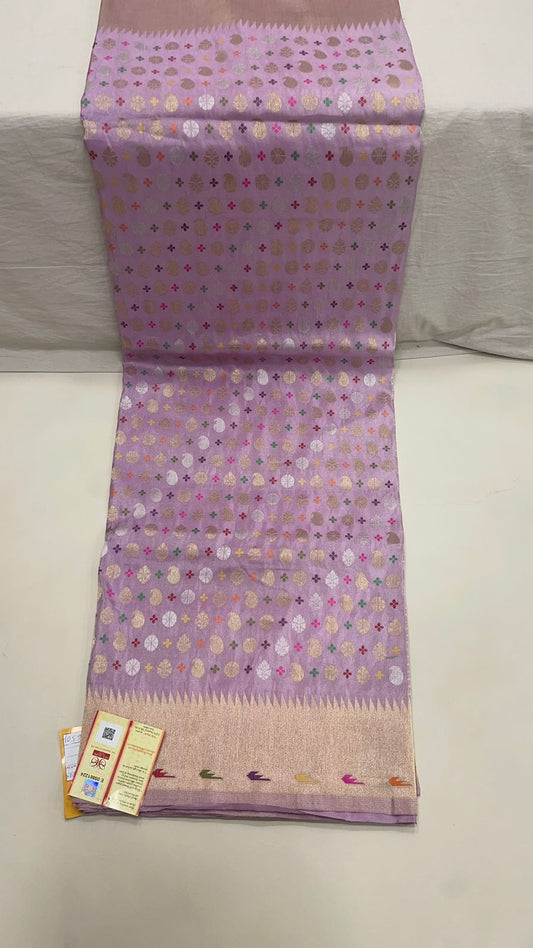 Faishana Handwoven Lavender Katan Tissue Saree with Minakari Booti and Paithani Kadhwa Meenakari Anchal - Twisted & Tested Zari Border Saree
