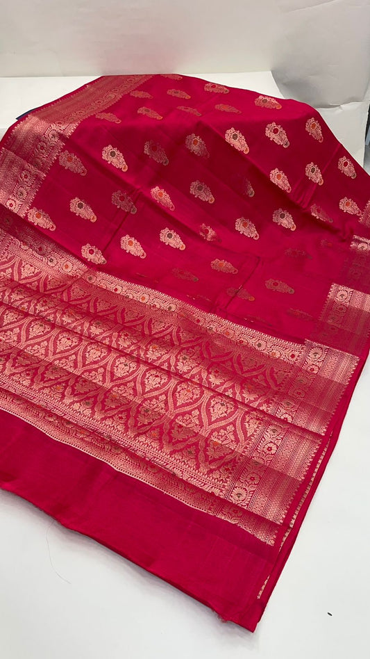Faishana Pure Silk Handloom Red Munga Silk Zari Mina Booti Minakari Jaal Pallu with Minakari Zari Border Banarasi Saree with Red Blouse piece