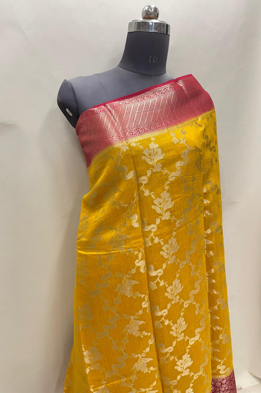 Munga silk, also known as Muga silk, is a rare and luxurious variety of silk that originates from the state of Assam in India. When combined with the intricate weaving techniques of Banaras, the result is a stunning Banarasi saree that exudes timeless beauty and grandeur. Munga silk Banarasi sarees are characterized by their rich, golden hue and lustrous sheen. The fabric is lightweight yet durable, making it comfortable to wear while retaining its elegant drape. These sarees often feature intricate brocade patterns woven with zari threads, creating intricate designs that are a testament to the skill of Banarasi weavers.The natural sheen of Munga silk complements the vibrant colors used in Banarasi sarees, making them a perfect choice for festive occasions and special events. Munga silk Banarasi sarees are not only a fashion statement but also a celebration of India's rich textile heritage. With their timeless appeal and regal charm, these sarees are a must-have in every woman's wardrobe. By purchasing directly from Faishana via (faishana.in), you benefit from high-quality sarees without additional costs from middlemen or commissions. For the most accurate pricing and current offers, visiting their website and checking for available promotions is recommended.