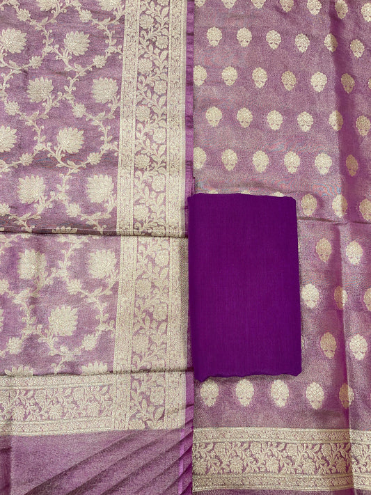 Puresilk Handloom Purple Tissue Silk Banarasi 3 pcs Suit Set RHN_TSU9