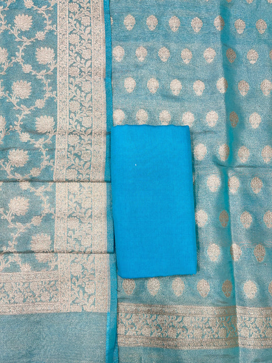 Puresilk Handloom Sky Blue Tissue Silk Banarasi 3 pcs Suit Set RHN_TSU7