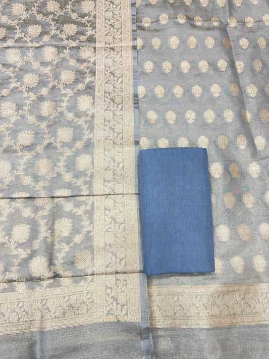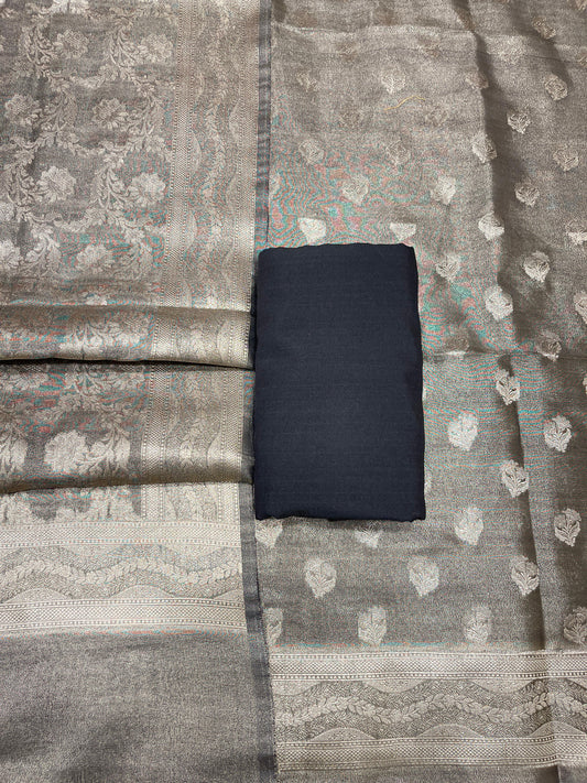 Puresilk Handloom Grey Tissue Silk Banarasi 3 pcs Suit Set RHN_TSU12
