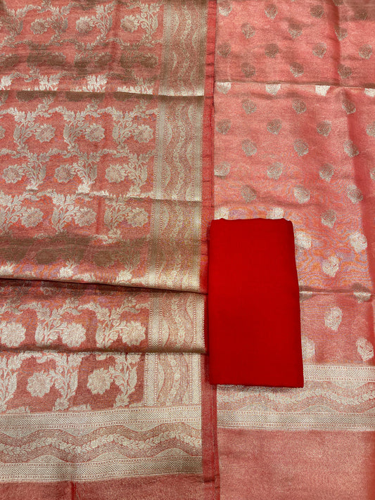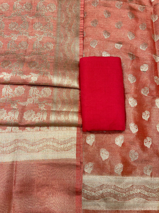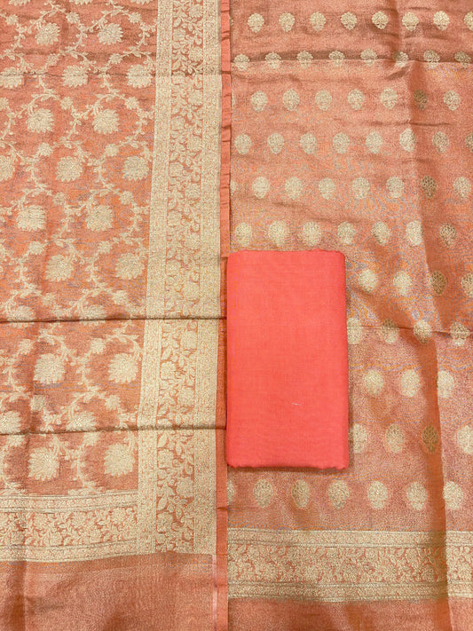 Puresilk Handloom Peach Pink Tissue Silk Banarasi 3 pcs Suit Set RHN_TSU8