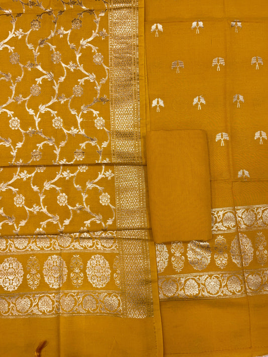 Puresilk Handloom Mustard Yellow Cotton Banarasi 3 pcs Suit Set RHN_CTN1