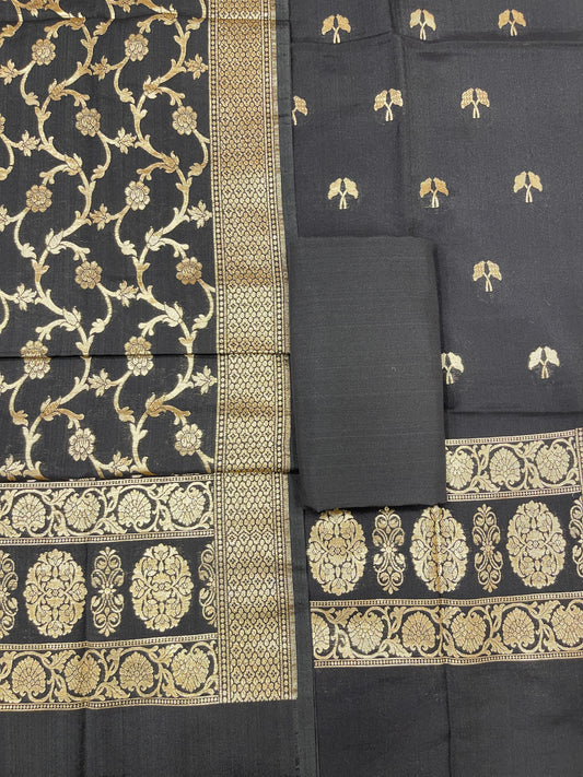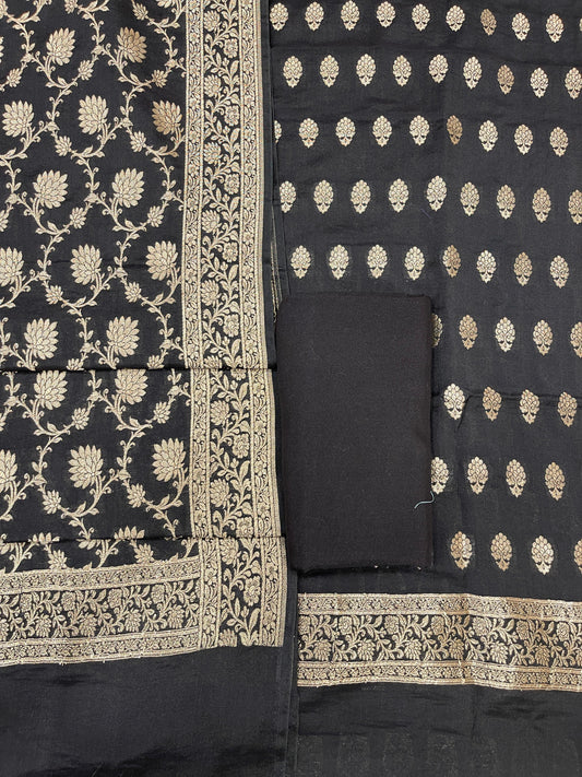 Puresilk Handloom Black Mulberry Silk Banarasi 3 pcs Suit Set RHN_MEL2