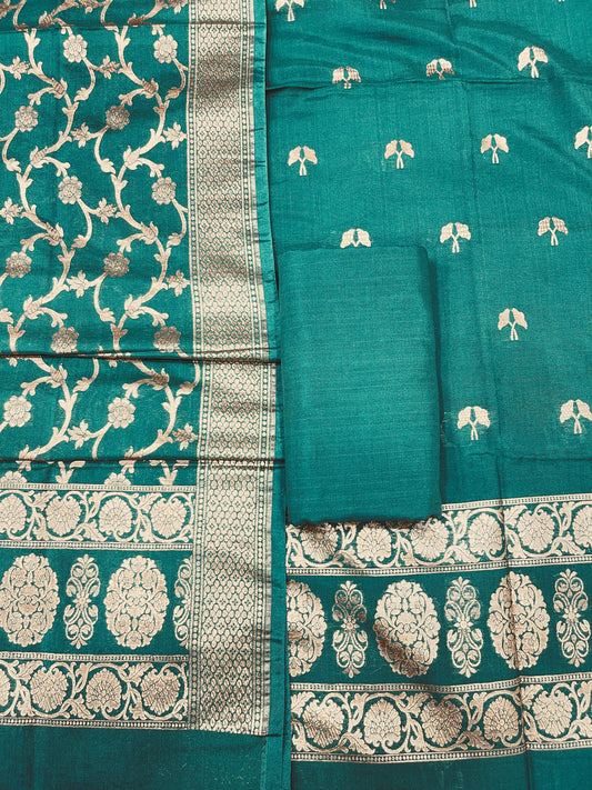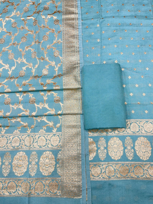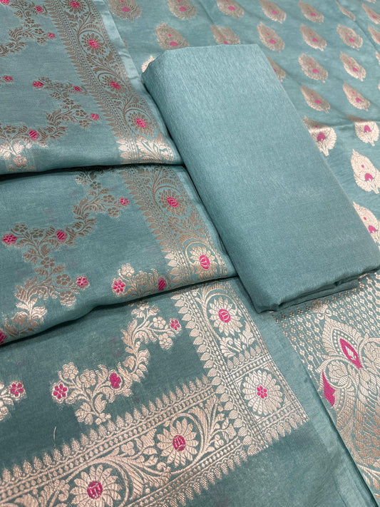 Puresilk Handloom Turquoise Blue Viscose Silk Banarasi 3 pcs Suit Set RHN_VS11