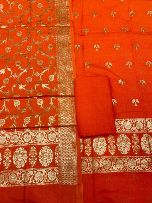 Puresilk Handloom Orange Mulberry Silk Banarasi 3 pcs Suit Set RHN_MEL4