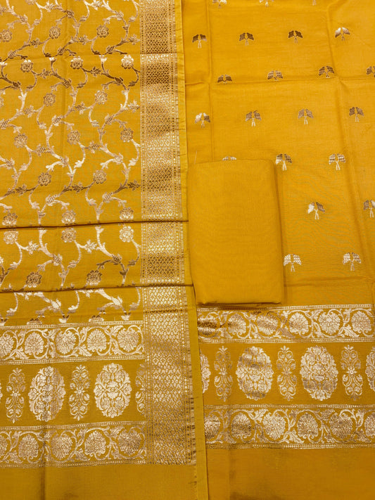 Puresilk Handloom Yellow Modal Silk Banarasi 3 pcs Suit Set RHN_MDL3