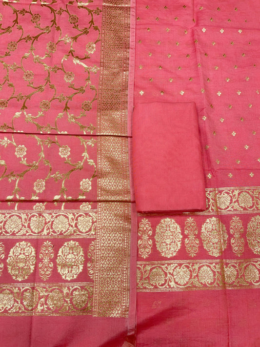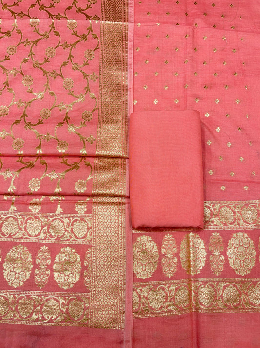 Puresilk Handloom Peach Pink Cotton Banarasi 3 pcs Suit Set RHN_CTN11