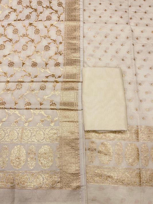Puresilk Handloom Off White Cotton Banarasi 3 pcs Suit Set RHN_CTN12