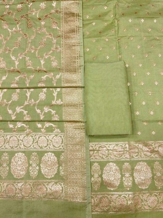 Puresilk Handloom Pista Green Cotton Banarasi 3 pcs Suit Set RHN_CTN10