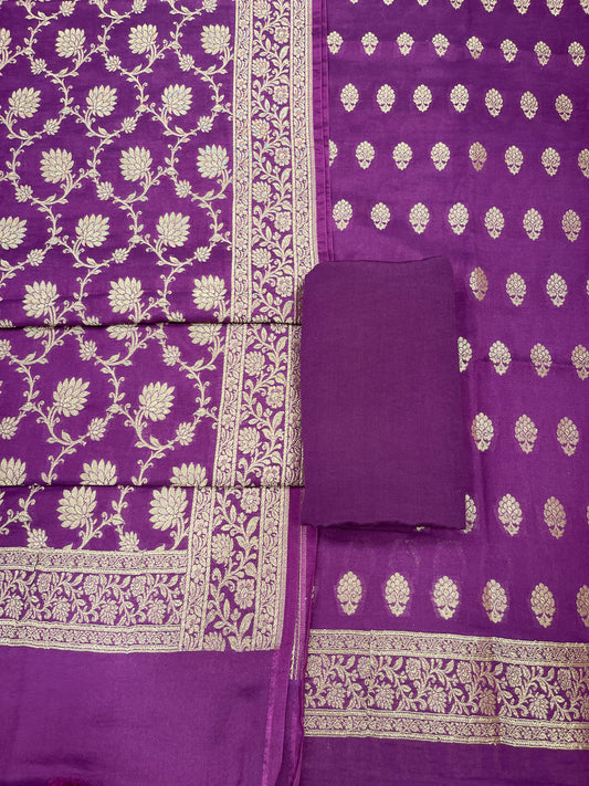Puresilk Handloom Purple Viscose Silk Banarasi 3 pcs Suit Set RHN_VS10