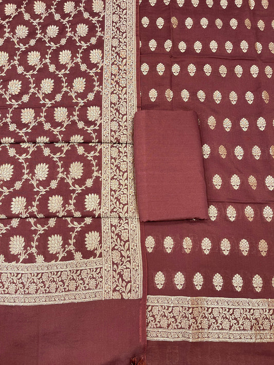 Puresilk Handloom Brown Mulberry Silk Banarasi 3 pcs Suit Set RHN_MEL5
