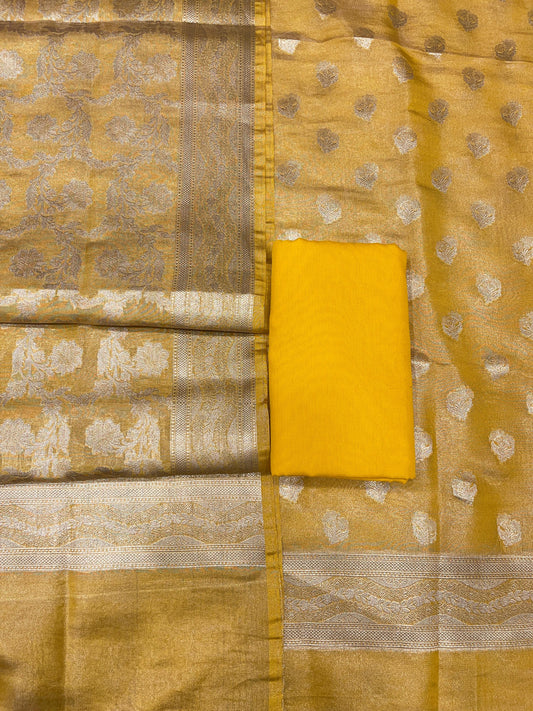 Puresilk Handloom Yellow Tissue Silk Banarasi 3 pcs Suit Set RHN_TSU10