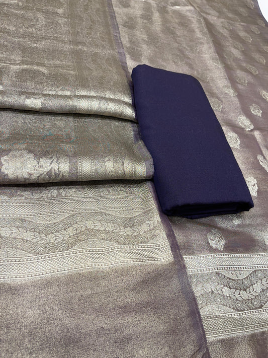 Puresilk Handloom Navy Blue Tissue Silk Banarasi 3 pcs Suit Set RHN_TSU6