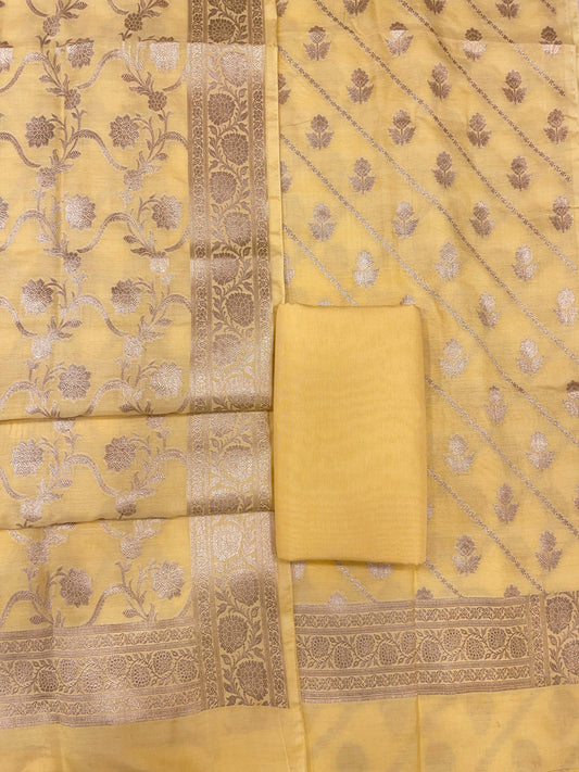 Puresilk Handloom Yellow Cotton Banarasi 3 pcs Suit Set RHN_CTN5