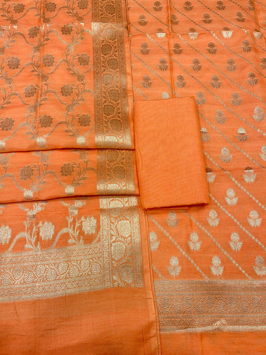 Puresilk Handloom Orange Modal Silk Banarasi 3 pcs Suit Set RHN_MDL6