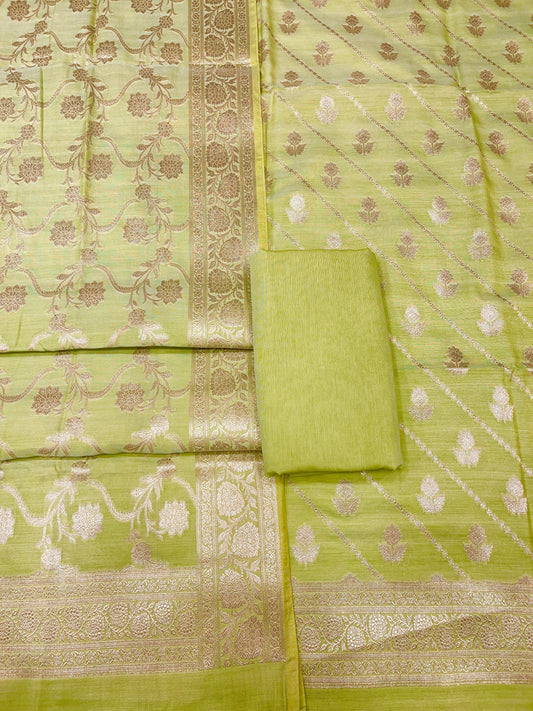 Puresilk Handloom Green Tissue Silk Banarasi 3 pcs Suit Set RHN_TSU1