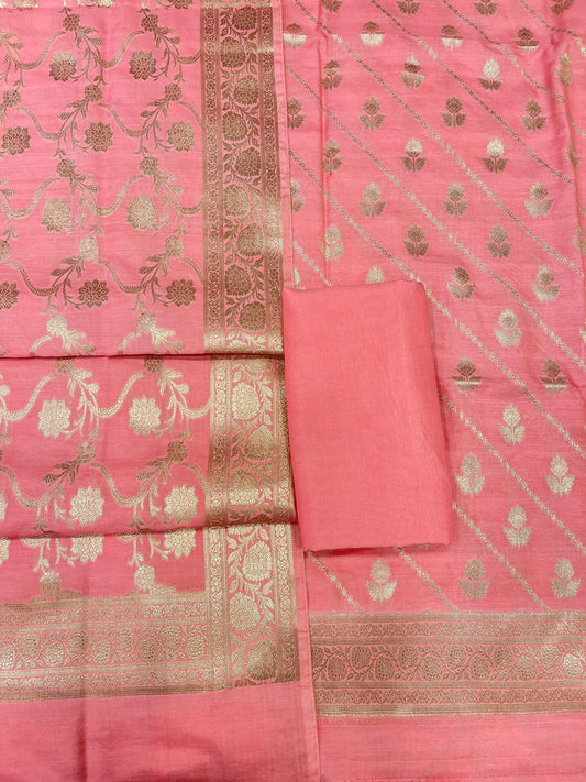 Puresilk Handloom Peach Pink Modal Silk Banarasi 3 pcs Suit Set RHN_MDL5