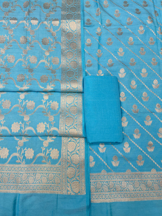 Puresilk Handloom Sky Blue Modal Silk Banarasi 3 pcs Suit Set RHN_MDL2