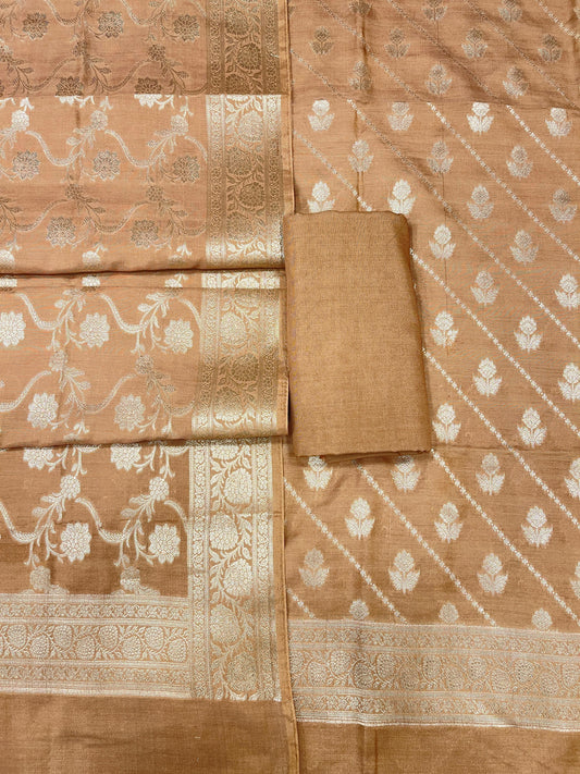 Puresilk Handloom Light Brown Modal Silk Banarasi 3 pcs Suit Set RHN_MDL1
