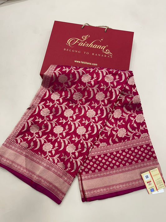 Faishana Presents Pure Handloom Magenta Uppada Silk Floral Pink Meena Jaal Design with Magenta Kadhwa Blouse Saree