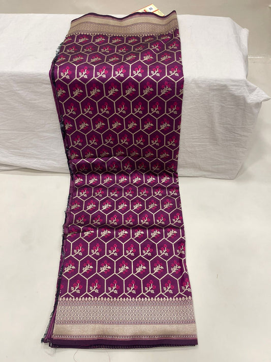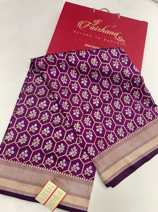 Faishana Pure Silk Handloom Magenta Uppada Silk Silver Mina Zari with Golden Zari Border Alfi Jaal and Magenta Kadhwa Blouse Saree