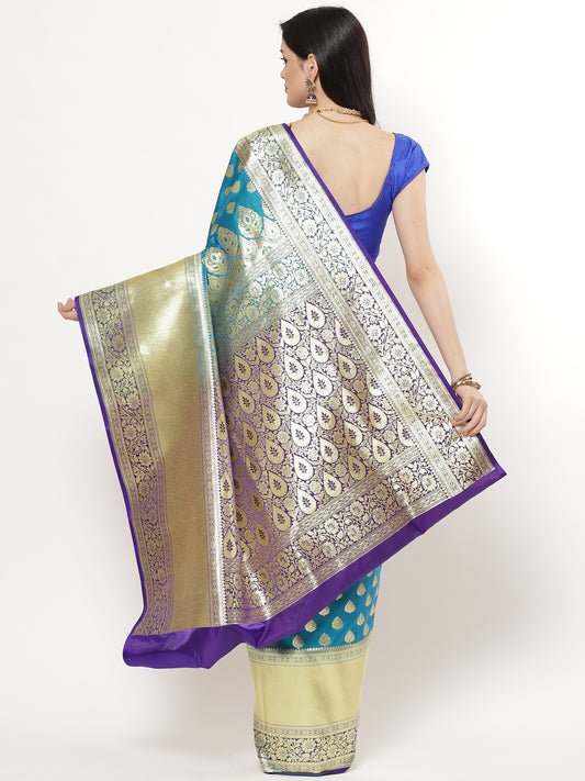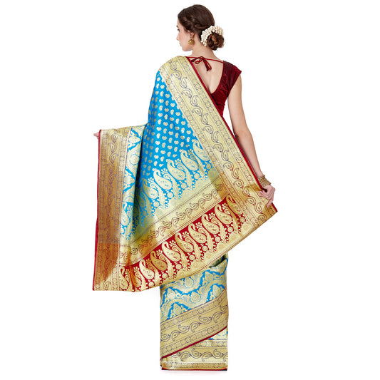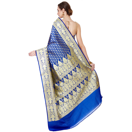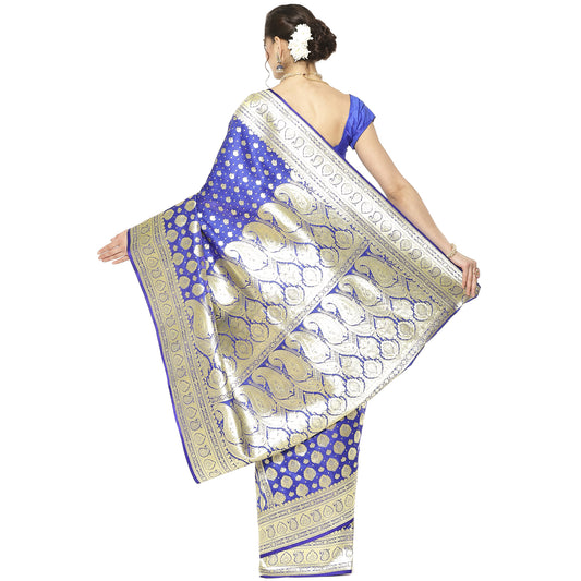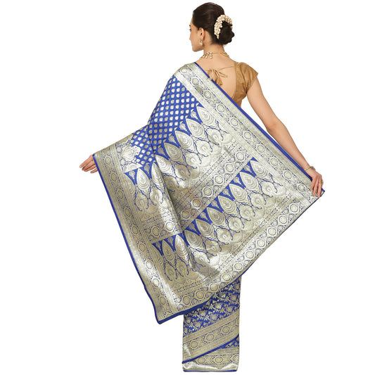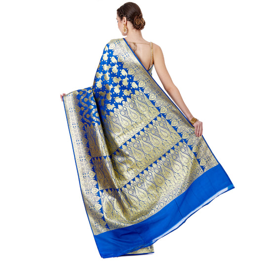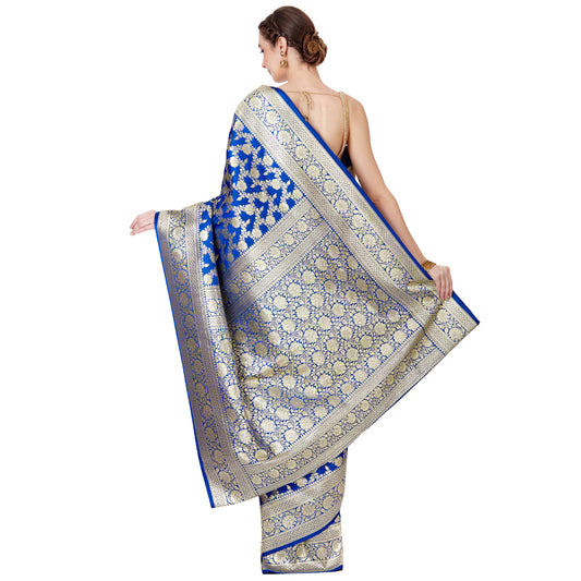 Faishana Presents Blue Satin Silk Floral Zari Jaal Banarasi Saree with Blue Blouse Piece