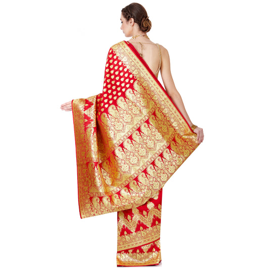 Faishana Presents Red Satin Silk Saree With Blouse Piece(JA26 RED Free Size)