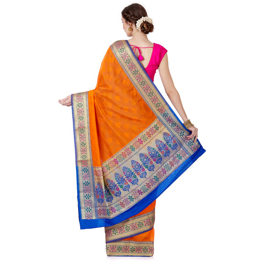 Faishana Presents Orange Solid Silk Blend Saree With Blouse Piece(JA20 ORANGE Free Size)