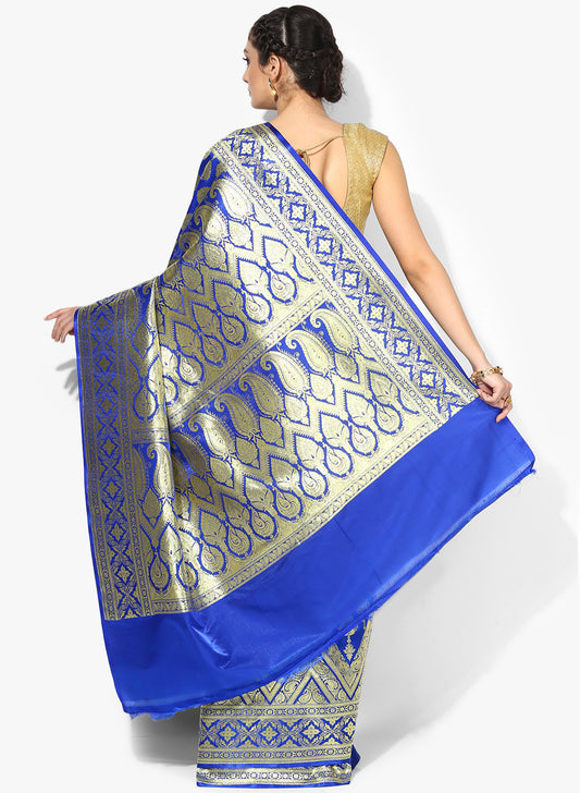 Faishana Presents Is Blue Satin Banarasi Saree.