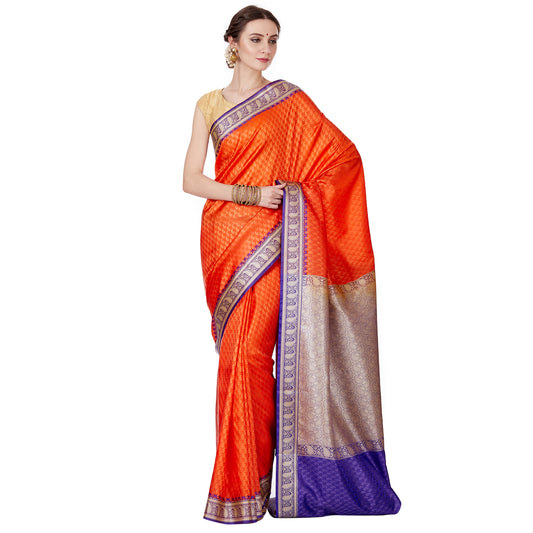 Orange Tanchoi Banarasi Sarees For Women GEBC17