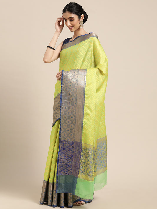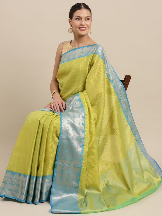 Faishana Green Resham Brocade Saree With Contrast Blue Zari Pattu Border