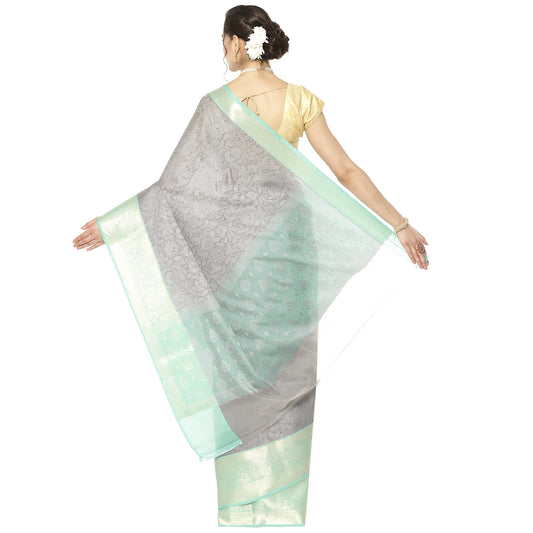 Grey Tanchoi Banarasi Sarees For Women GEBC2