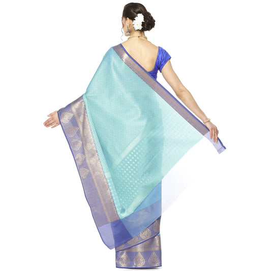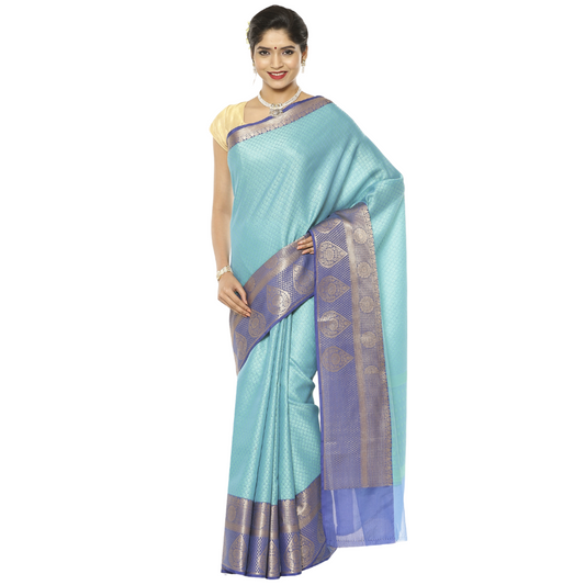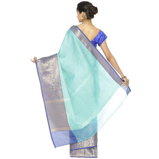 Faishana Turquoise Blue Resham Brocade Saree With Contrast Blue Zari Pattu Border