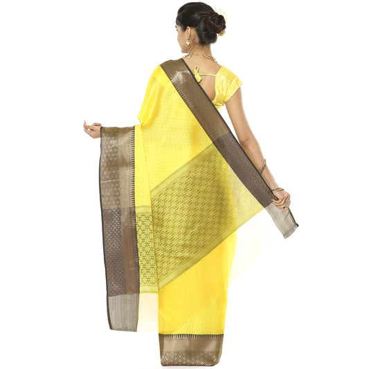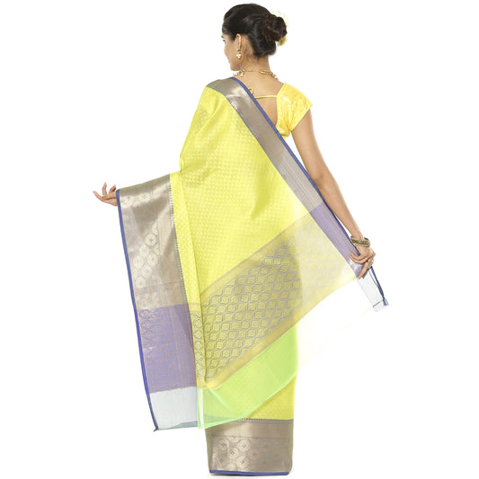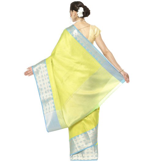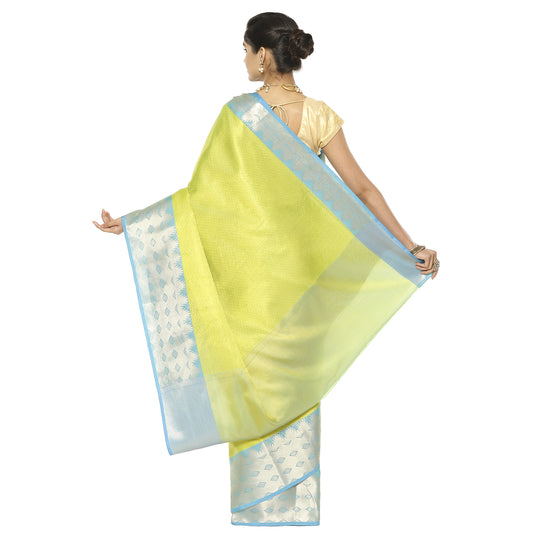 Faishana Yellow Resham Brocade Saree With Contrast Blue Zari Pattu Border