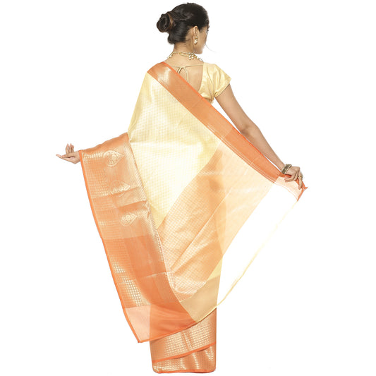 Faishana Cream Resham Brocade Saree with Contrast Orange Zari Pattu Border