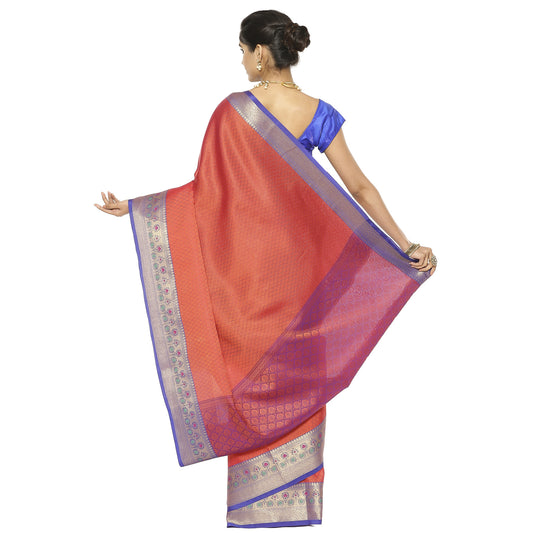Faishana Light Red Resham Brocade Saree With Contrast Blue Zari Pattu Border